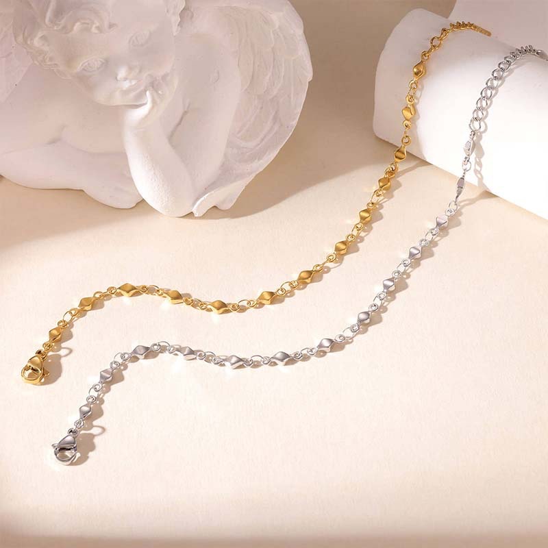 - Made of alloy (silver = polished silver finish; gold = gold-plated finish), the chain combines small ring links and diamond-shaped links for a sleek, glossy texture.
