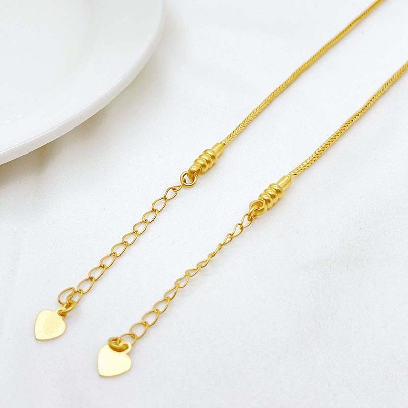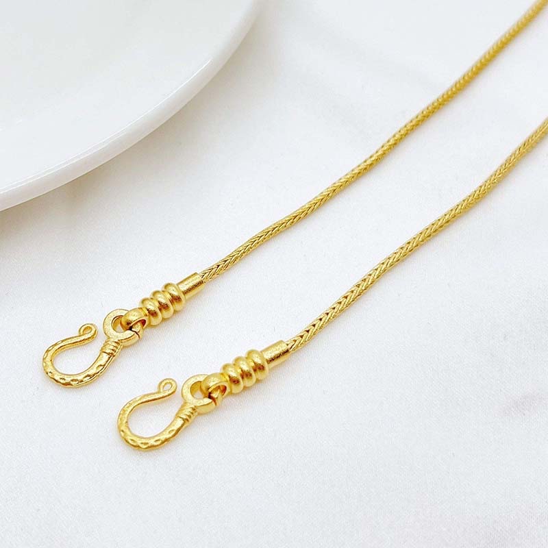 - Made of gold-plated alloy, the chain is woven from fine metal wires, delivering a smooth matte metallic luster—soft in texture and resistant to discoloration.