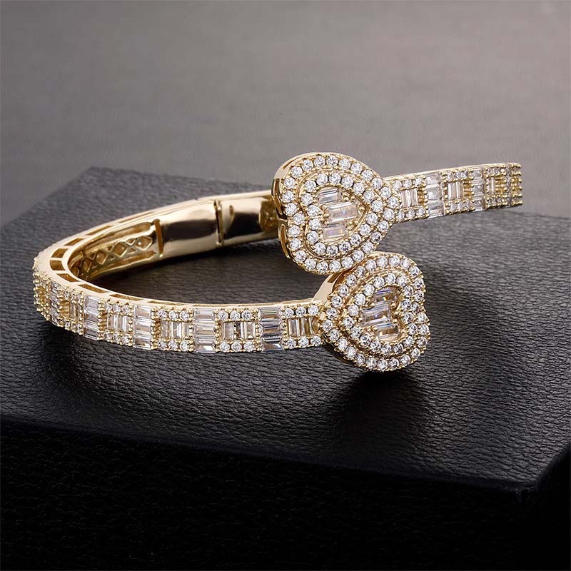 Centered on “heart-shaped center diamond + full-diamond bangle body”: The heart element adds romantic sweetness, while the full-diamond design exudes high luxury.