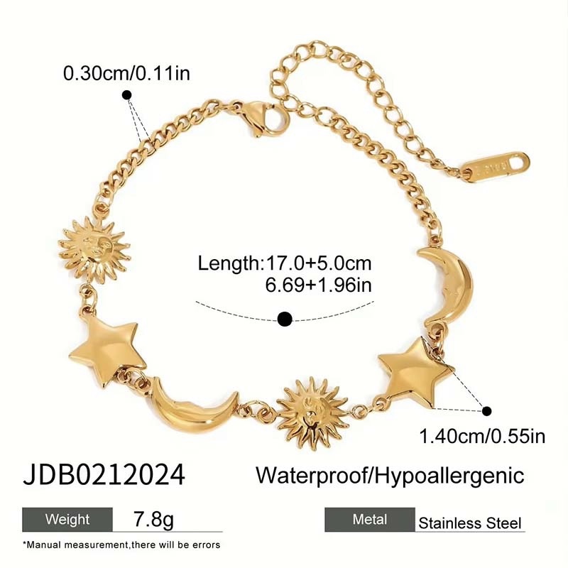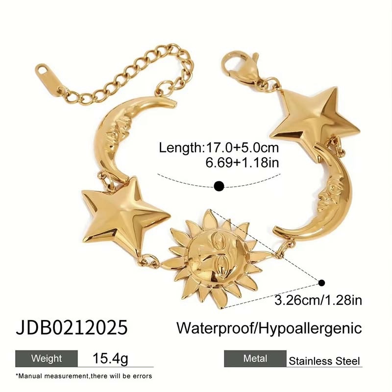 The beads are arranged in an “irregular size + mixed-shape stringing” way, so it never looks dull. It’s paired with a sun-shaped pendant (adorned with a small pearl and leaf detail)—it has a touch of retro playfulness, and the pendant’s chain adds a lively, dynamic feel. The bracelet comes with an adjustable clasp, fitting all wrist sizes.