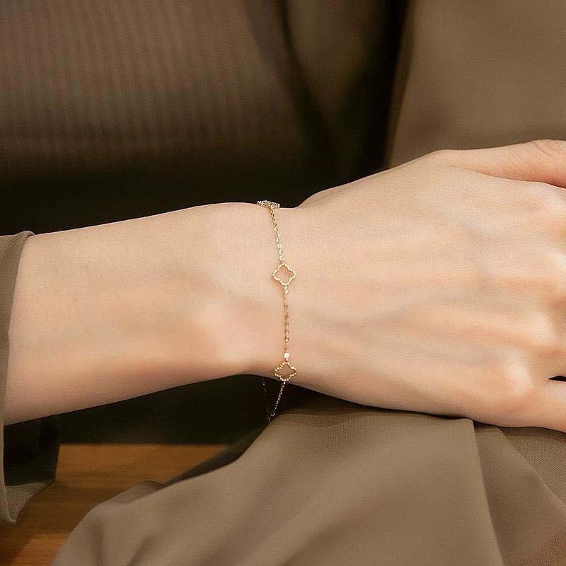 Four-Leaf Flower Hollow Thin Chain Bracelet