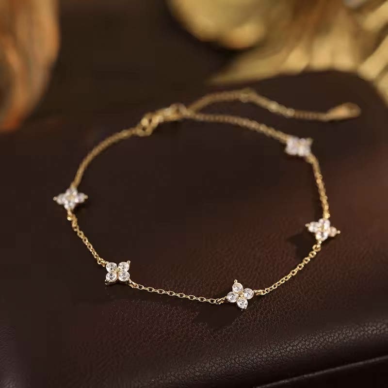 • Style Positioning: Falls under the “elegant refined style”—the diamond-accented four-petal flowers carry a gentle vibe, while the gilded thin chain enhances light luxury texture, making it suitable for various elegant outfits;