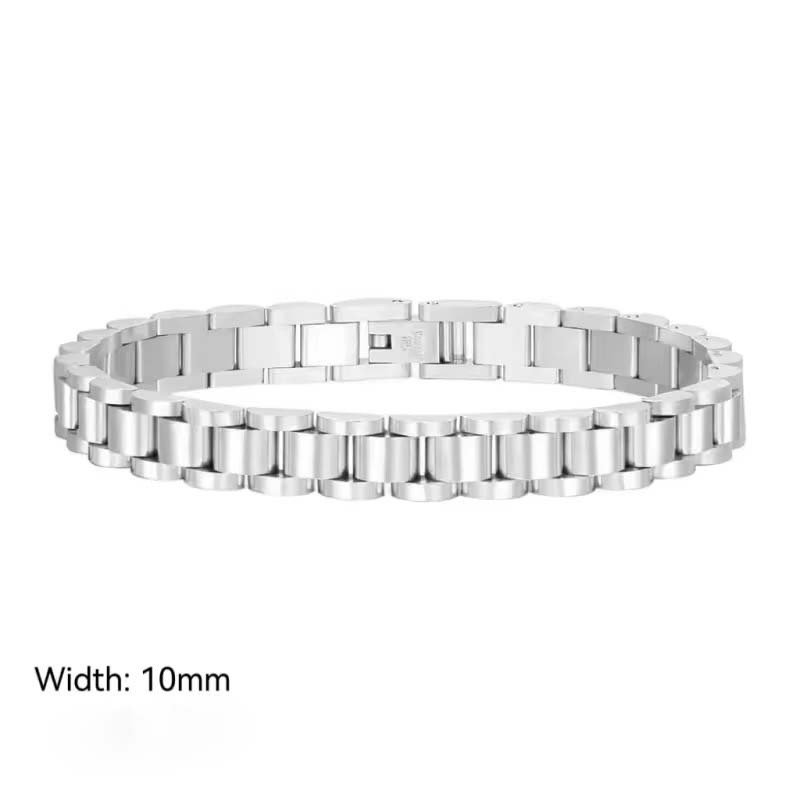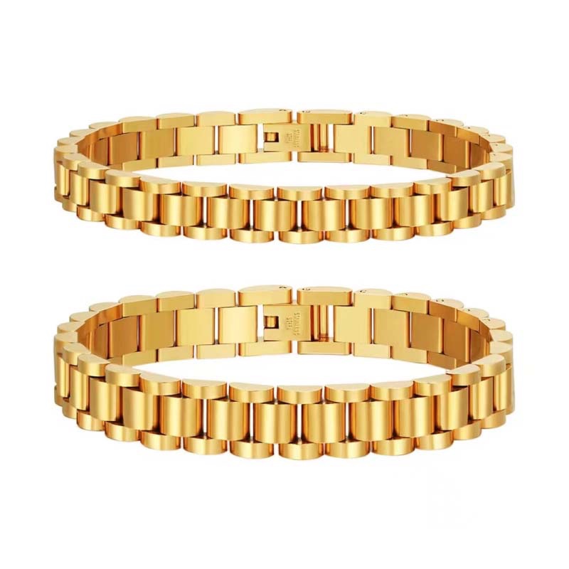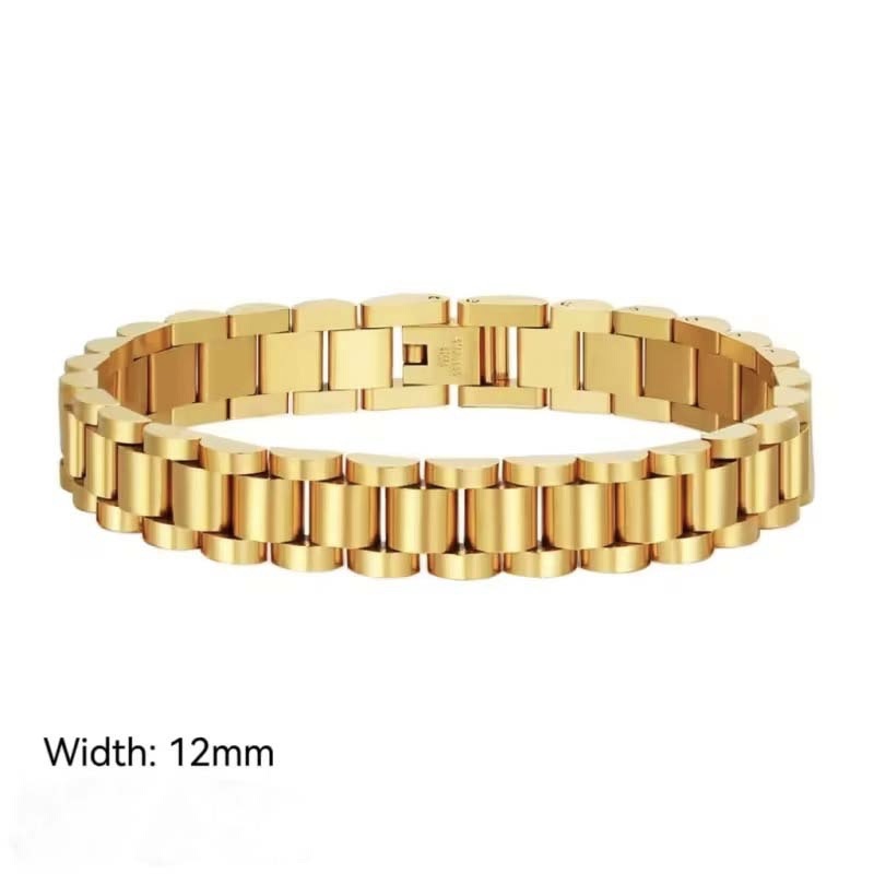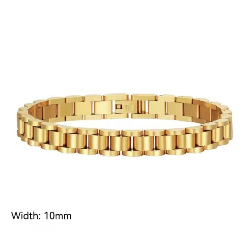 Design Highlights: Centered around “watch-link structure + width options” with no extra embellishments, it delivers a sharp, rugged aesthetic through neatly arranged links. Gold exudes luxury, while silver feels crisp; the width options cater to different wrist sizes and style preferences (the wider 12mm option has a bolder presence, while the 10mm option feels more delicate).