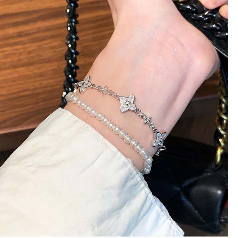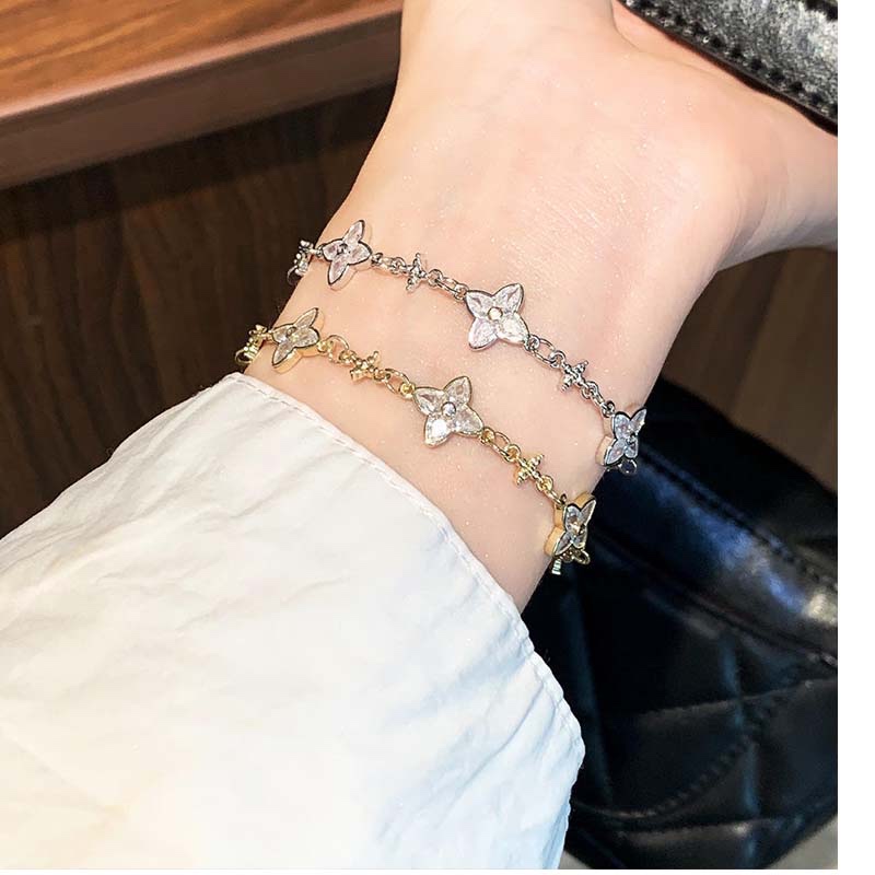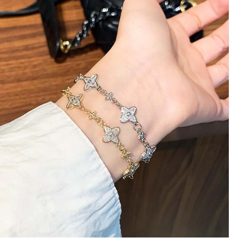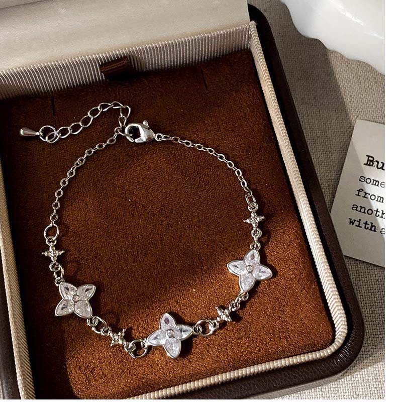 Features a dainty gold chain decorated with 3 soft pink four-petal flower charms (each inlaid with a tiny central crystal) and small star accents — the combination of floral sweetness and starry delicacy creates a romantic,dreamy look.