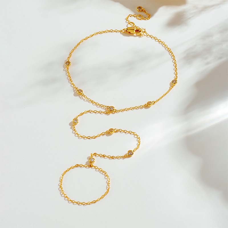 - Made of 925 silver (gold style: gold-plated; silver style: polished finish), the chain is an ultra-slim ring chain accented with spaced small diamonds—sleek texture with excellent skin-friendliness.