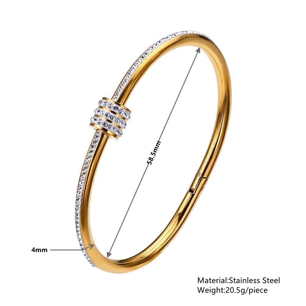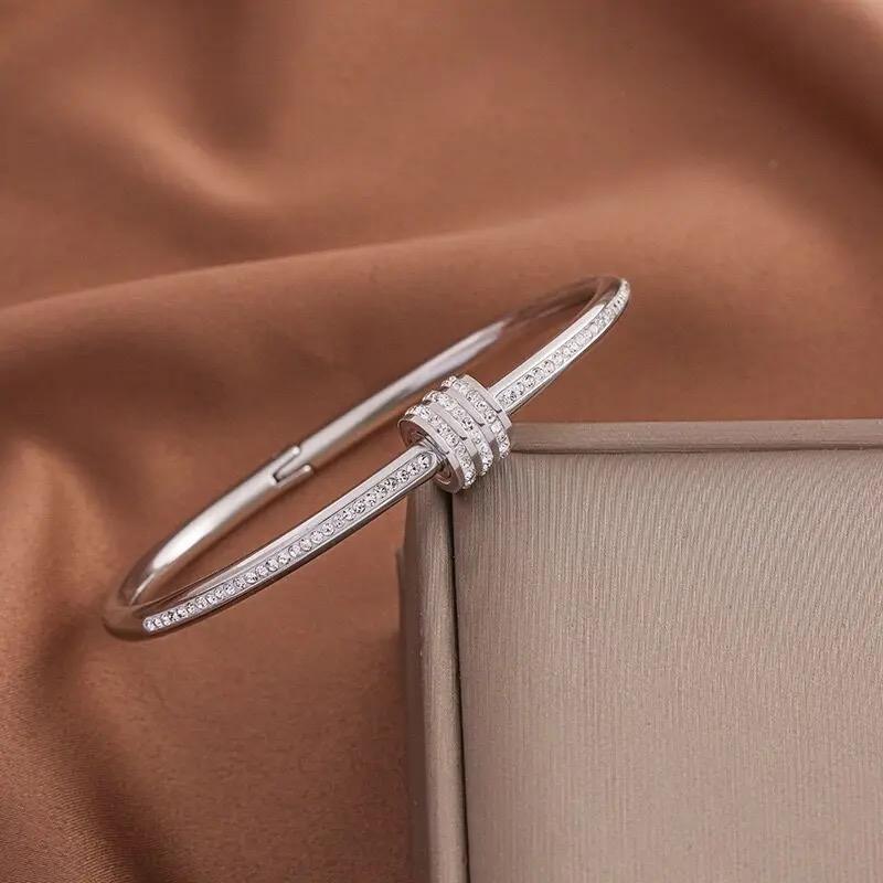 - Design Highlights: It includes slim bangles in multiple colors (gilded, rose gold, silver-white). The bangle body features sleek, minimalist lines, paired with a sliding diamond-studded clasp: the diamonds are tightly arranged with brilliant shine, and the clasp can be adjusted freely to fit different wrist sizes, blending thoughtful detail with functionality;